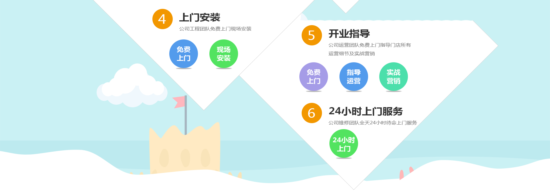 提供樂園整體的設計圖及效果圖、開業(yè)設備調試、開業(yè)指導及培訓。
